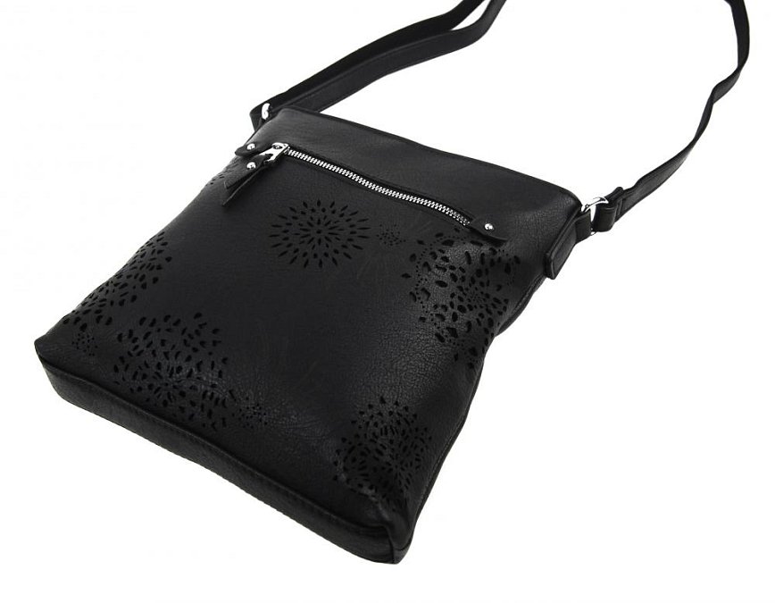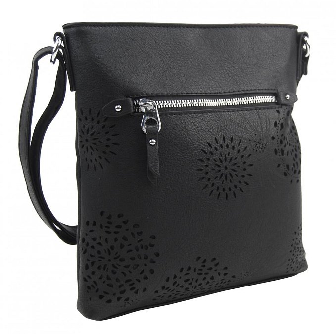 Crossbody dámska kabelka v kvetovanom dizajne čierna 5432-BB