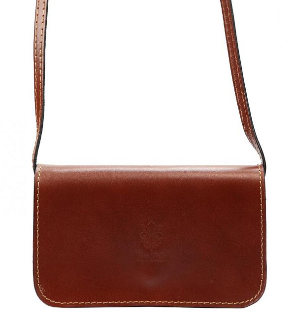 Kožená malá dámska pozdĺžna crossbody kabelka hnedá
