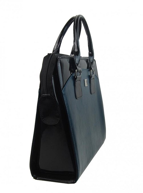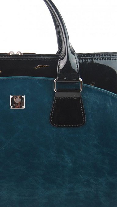Konečne taška, ktorá rozumie, že moderná žena potrebuje nosiť celý svoj svet štýlovo! Táto petrolová kráska v čiernom lakovanom korpuse nie je len doplnok – je to módny statement s dokonalou organizáciou.